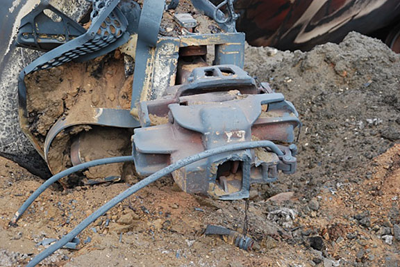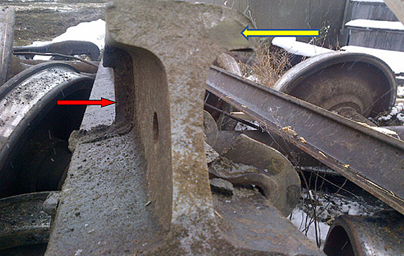Image of the coupler shank failure with the double shelf couplers still engaged