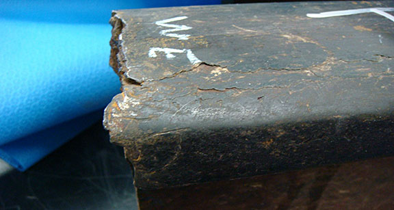 2. If surface defects on rails are not removed prior to ultrasonic rail flaw detection, there is a risk that internal rail defects will remain undetected, leading to broken rails and derailments.