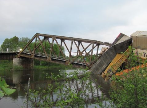 - Some of the derailed cars impacted the bridge at Mile 112.80, knocked the south end of the bridge off the abutment, and severely damaged the bridge.