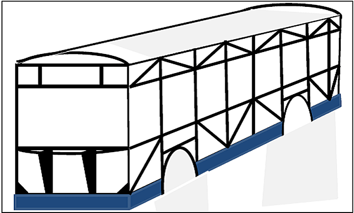 The bottom portion of the skirt behind the pilot of VIA 915 was 20 inches (51 cm) above the ground level at the point of collision. The side panel was 44 inches (112 cm) above the ground. The chassis of the ADL E500 bus, which was about 17 inches (43 cm) above ground level, had passed beneath the bottom portion of the skirt behind the pilot and side panel of VIA 915.