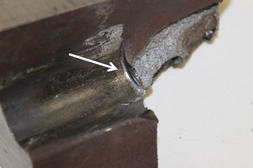 - The fillet under the head on rail piece No. 1 had been extensively deformed by the ends of the joint bars (photos 4 and 5).