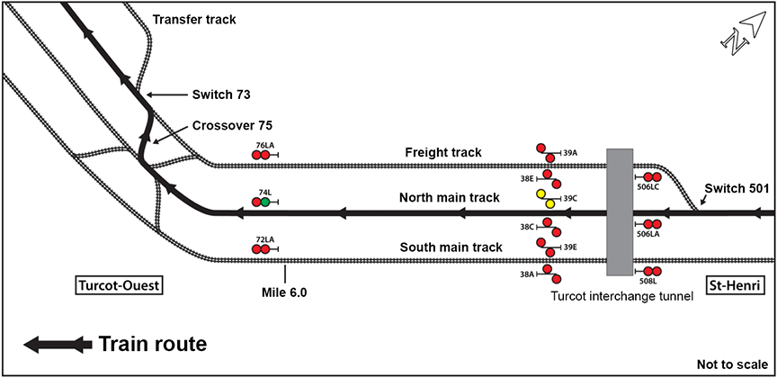 - The regular route of the train, as well as the foreman's instructions, which did not include the freight track, led the crew members to anticipate that they would remain on the north track at Turcot-Ouest and that they could proceed without reducing speed.