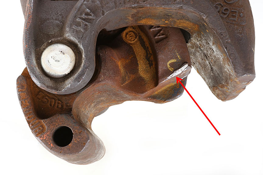 - Upon reaching a peak load near the top of the east pullback track, the partially engaged edges of the locking block and knuckle yielded, allowing the locking block to rise out of position and the knuckle to open, releasing the cut of 91 cars.