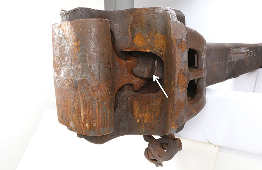 During a subsequent examination of the pullback tracks, various broken and rusted coupler and knuckle components were observed along the tracks. It is not known how long these components had been there.