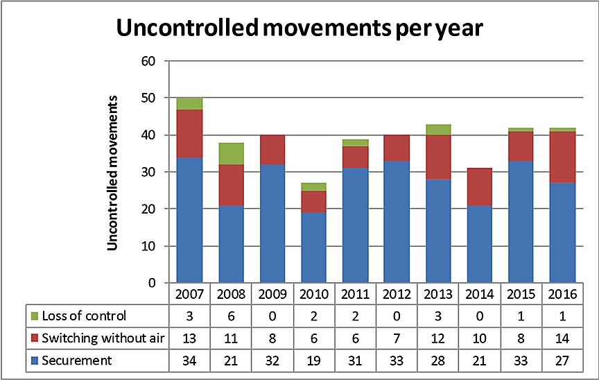 - The number of occurrences involving runaway rolling stock has not improved over that past 10 years.