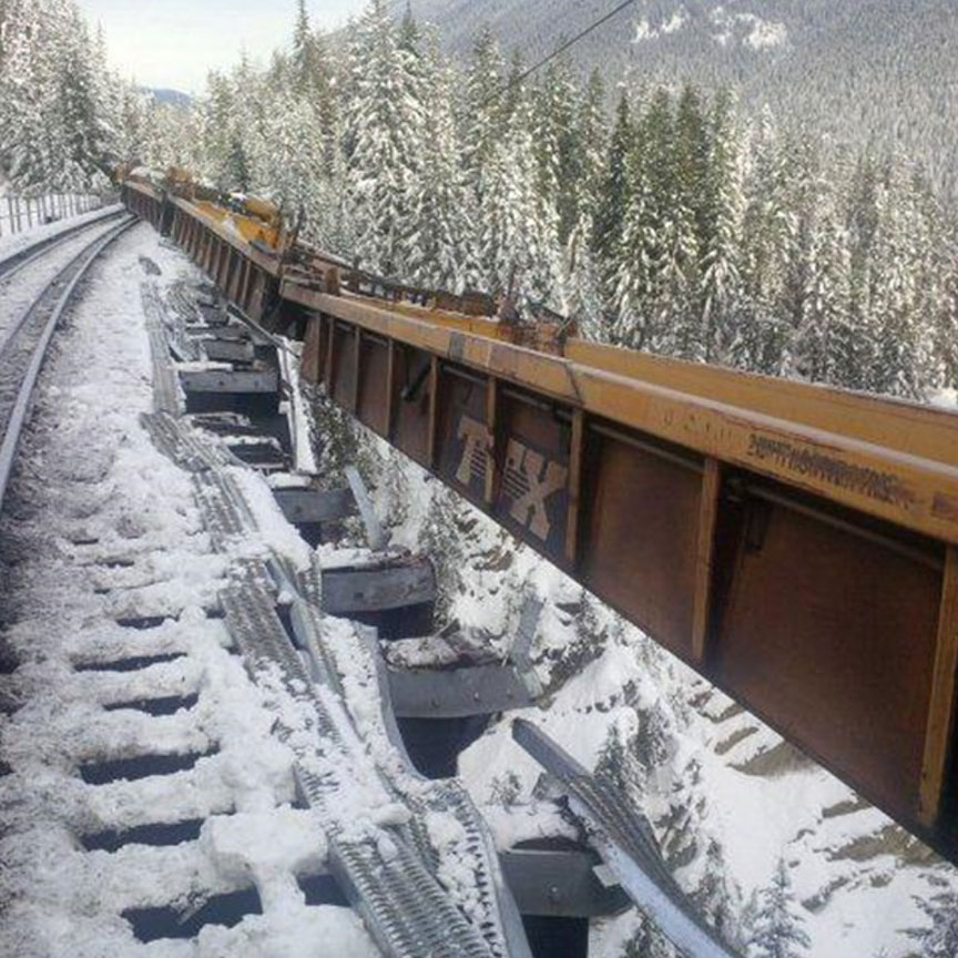 - The derailment occurred when 6 empty platforms from 2 intermodal flat cars stringlined while the train was proceeding under high tractive effort in a 8.75-degree curve on a 2.2% grade.