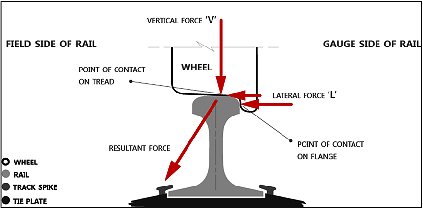 - Owing to significant gauge face wear on the high rail, the wheel-rail contact point had been shifting toward the field side, which was reducing the lateral stability of the rail.
