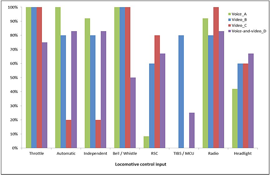 - For voice-only systems, audio data when combined with forward-facing video data provide a meaningful amount of information concerning crew use of many locomotive controls as well as responses to external train control signals and to audible alarms.