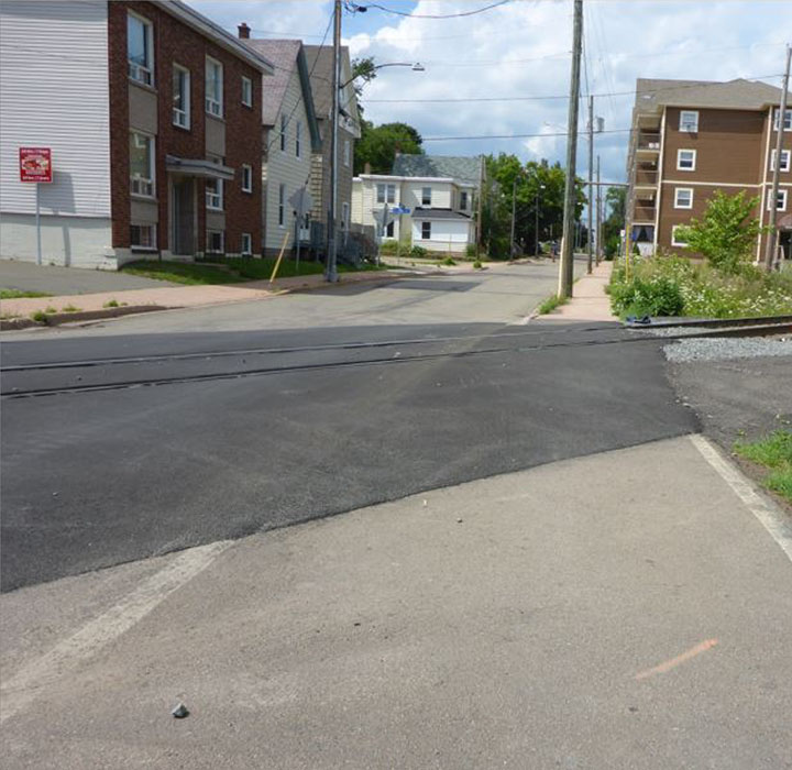 In the downtown area of the City of Moncton, there are 6 public crossingsFootnote 2 (between Mile 124.26 and Mile 124.49). A no-whistle zone is in effect for these crossings. Each crossing is equipped with a grade crossing warning system (GCWS) consisting of flashing lights, bell, and gates.