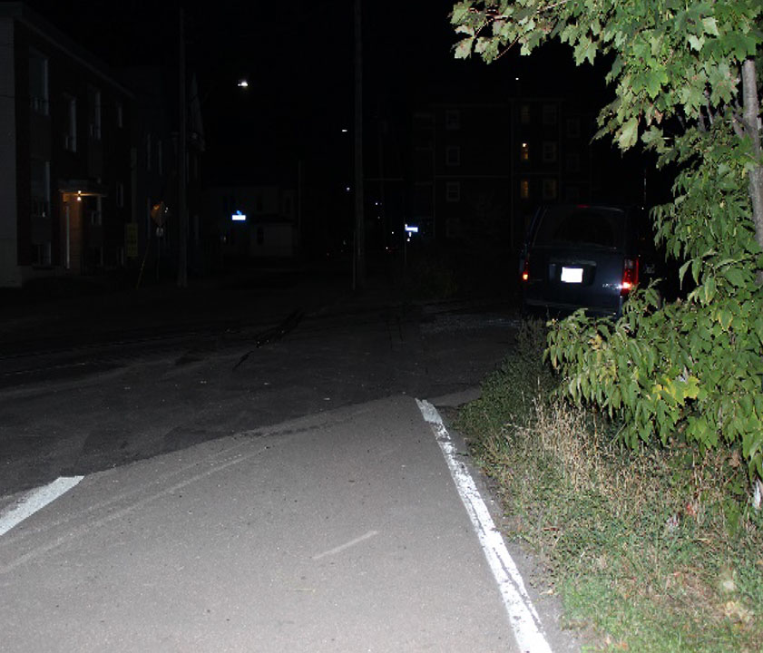 - Without reflective line markings on the newly asphalted portion of the sidewalk, the crossing lacked effective visual cues for the pedestrian to safely navigate at night.