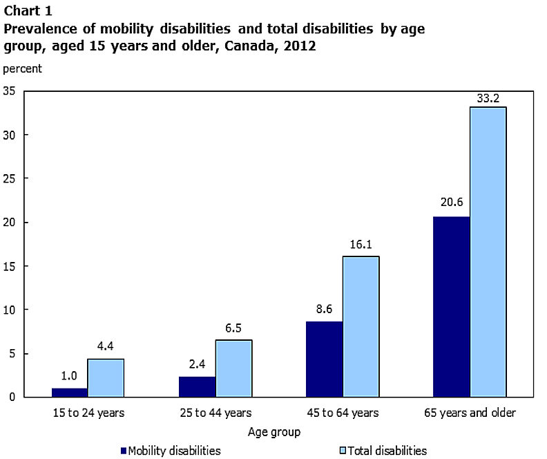 There are thousands of railway grade crossings in Canada that are regularly used by pedestrians. When a train strikes a person, the likelihood of serious injury or death is high. Although the number of accidents where pedestrians in wheelchairs have been struck by a train at grade crossings is low, the number of persons in Canada using assistive devices is on the rise. According to Statistics Canada, in 2012, upwards of 2 million Canadian adults were identified as having a mobility disability, with approximately 300 000 using a wheelchair.Footnote 56