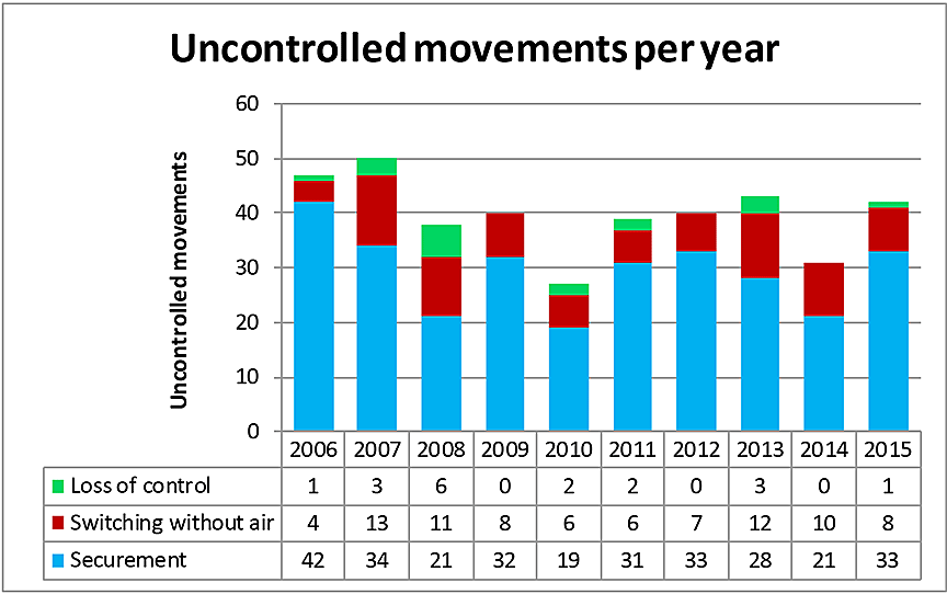 While significant effort has gone into revising CROR Rule 112, the number of occurrences involving uncontrolled movements has increased from 31 in 2014 to 42 in 2015, with a 5-year average of 39. This suggests that more still needs to be done to ensure that the risk of such occurrences is reduced and appropriately mitigated.