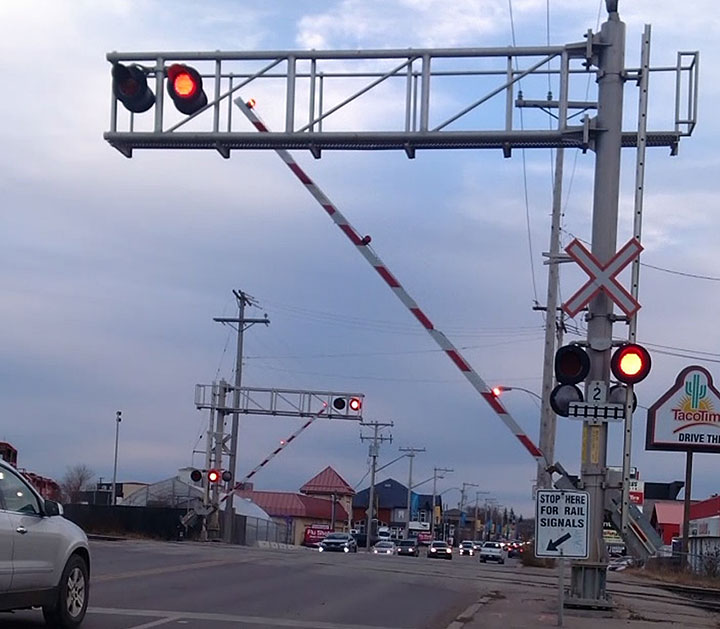 Central Avenue is a 4-lane roadway that runs predominantly north/south and has a posted speed limit of 50 km/h. Trains in the area are limited to 10 mph. The vehicle traffic on Central Avenue averaged 16 000 vehicles per day for an estimated train/vehicle cross-product of 112 000.