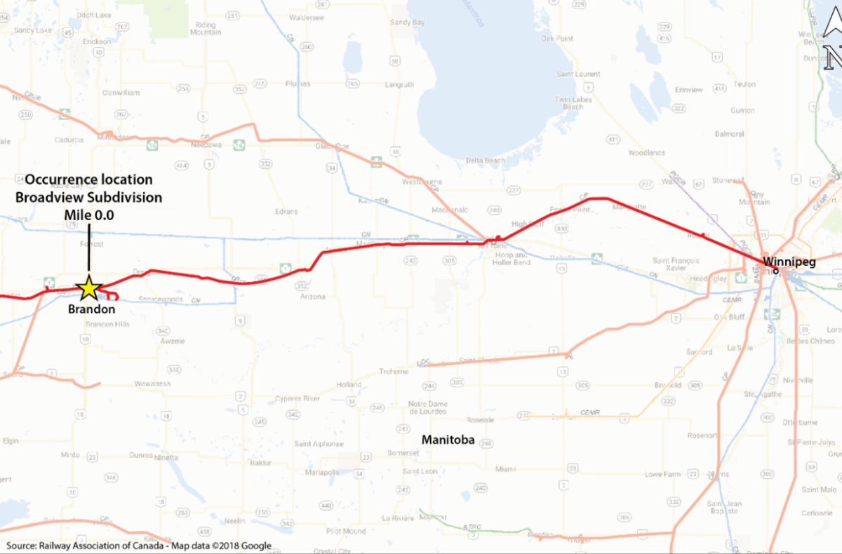 On 02 September 2017, at 0700,Footnote 1 a Canadian Pacific Railway (CP) Engineering Services work crew based in Winnipeg, Manitoba, began its shift with a job briefing. The work crew was to drive to Brandon, Manitoba (Figure 1), in a crew-cab half-ton truck and a material-handling truck (CP serial number EO7029).