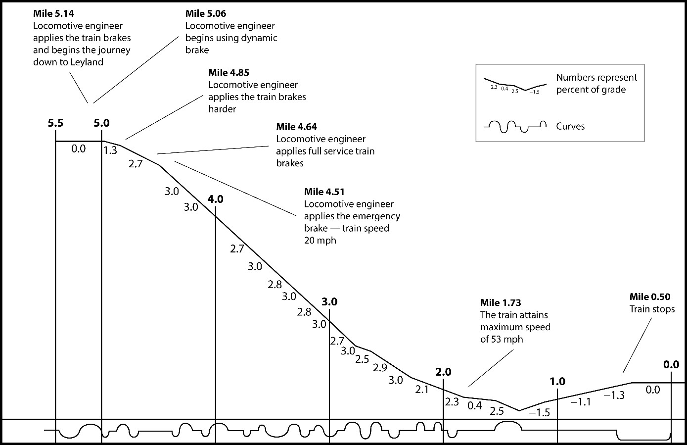 Table 1 provides a summary of the events compiled from the locomotive event recorder (LER) of the lead locomotive. Appendix B provides more details on train handling based on the LER information.