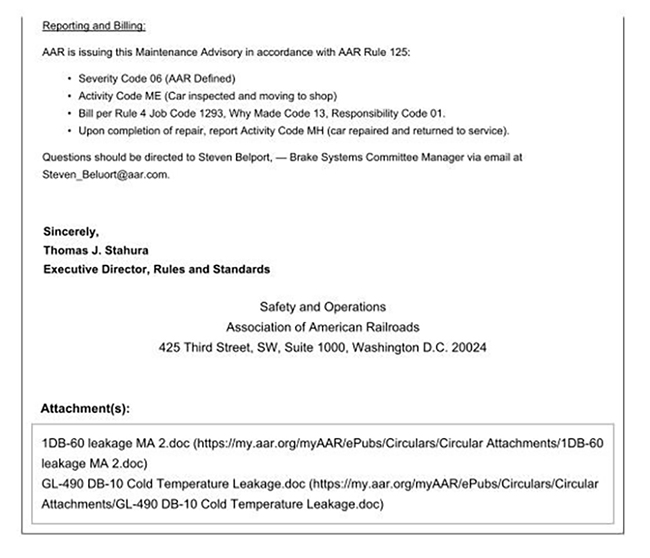 - requiring that all new freight car air brake control valves installed will have the DB-60II brake cylinder pressure maintaining feature;