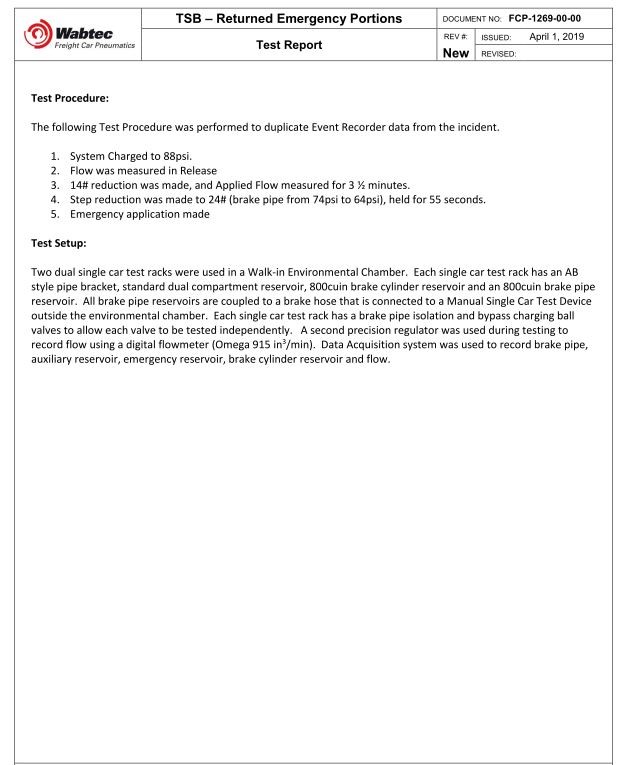 Appendix E – Wabtec test report of emergency portions returned by the TSB