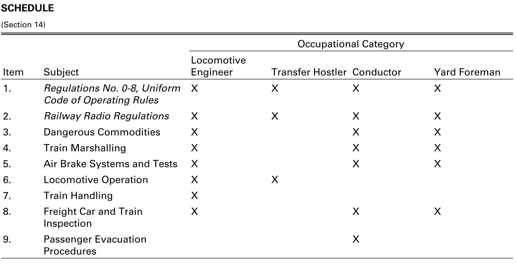 Source: Transport Canada, SOR/87-150, Railway Employee Qualification Standards Regulations.