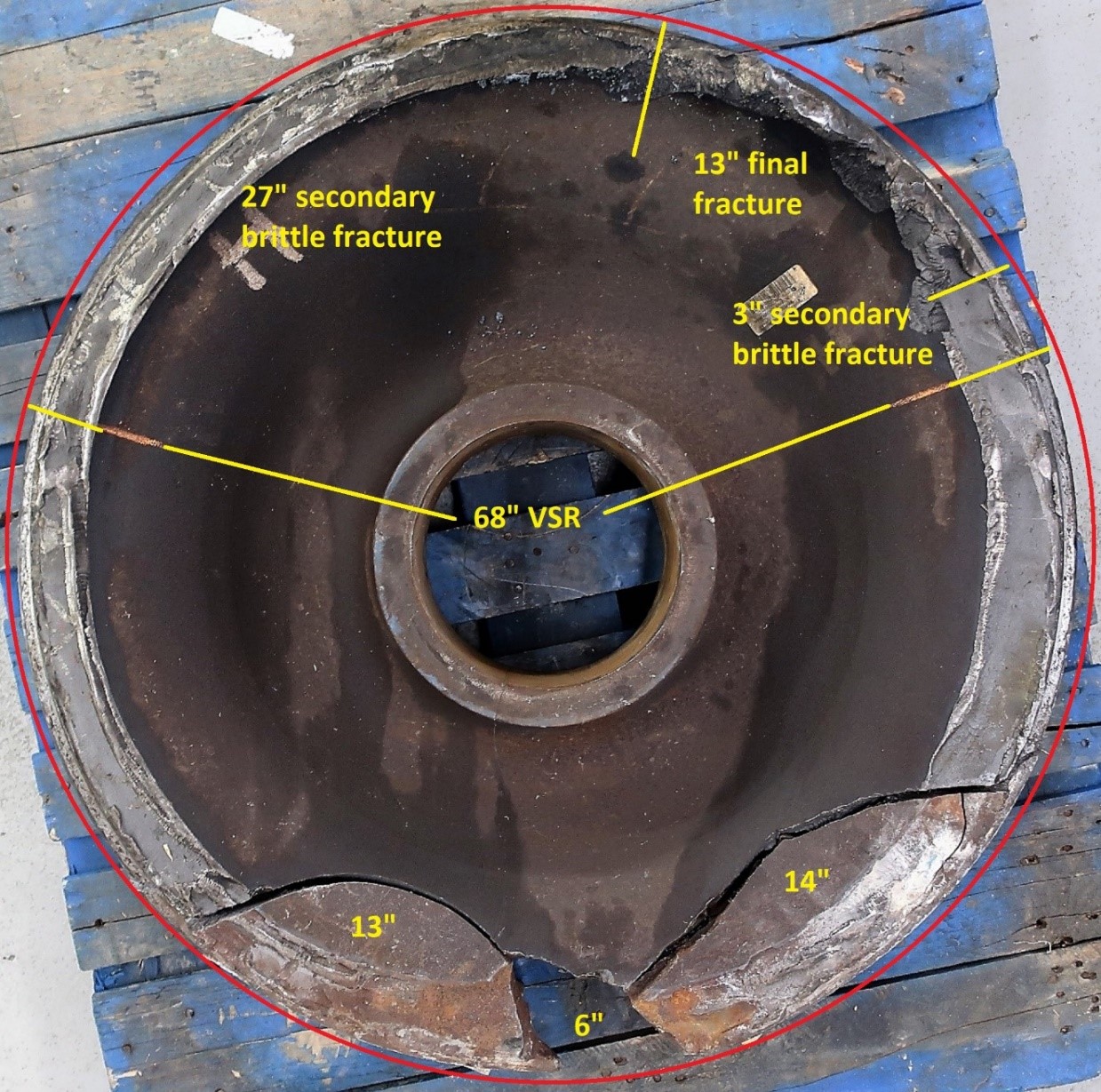 - The VSR displayed vertically oriented, progressive, brittle growth rings on the rim face fracture surface, which propagated circumferentially in opposite directions from an initial fracture origin, reaching an overall length of 68 inches (Figure 7).