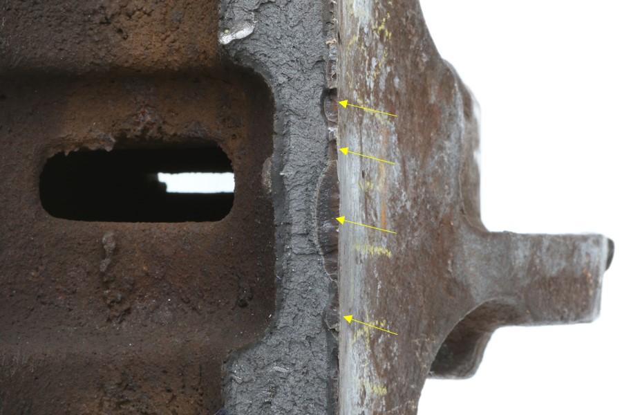 - The age of the fatigue cracks in addition to the observed porosity and inclusions observed suggest that manufacturing deficiencies in the casting process weakened the knuckle and it failed under normal service stresses.