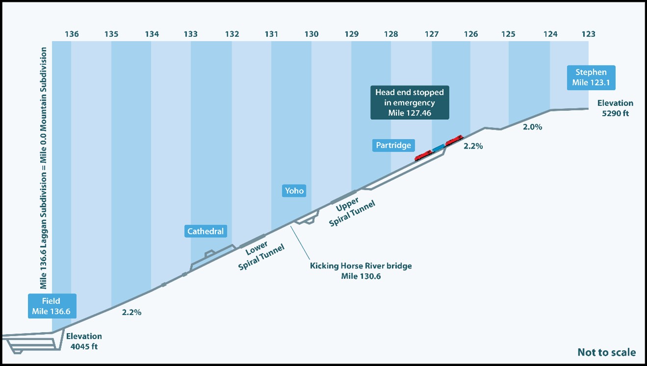 - Training that was not specific to the unique operating conditions of the Laggan Subdivision, and the inadequacy of experience of employees supervising mountain-gradeFootnote 5 operations on this subdivision