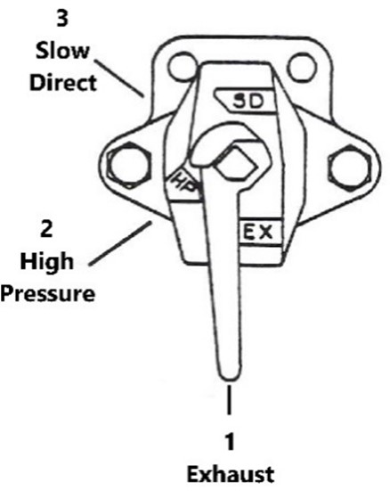 After the inbound crew brought the train to an emergency stop, they had a job briefing with the trainmaster. It was decided to get the train underway again by releasing the emergency brake application and allowing the train’s air brakes to recharge as the train continued its descent (an operation called release and catch). In order to limit the train’s acceleration after the brakes were released, the pressure retaining valvesFootnote 4 had to be set to the high-pressure position on 84 of the rail cars. The conductor completed this task at approximately 2330.