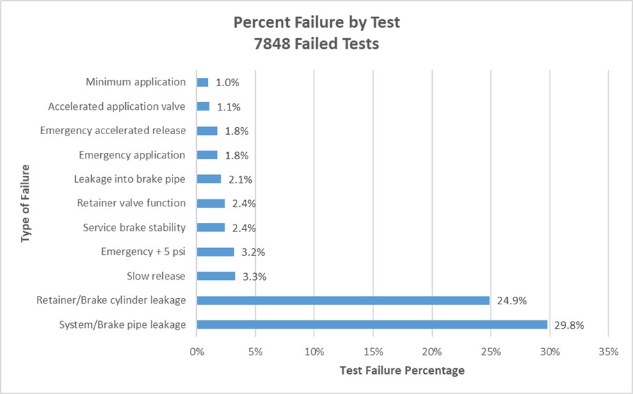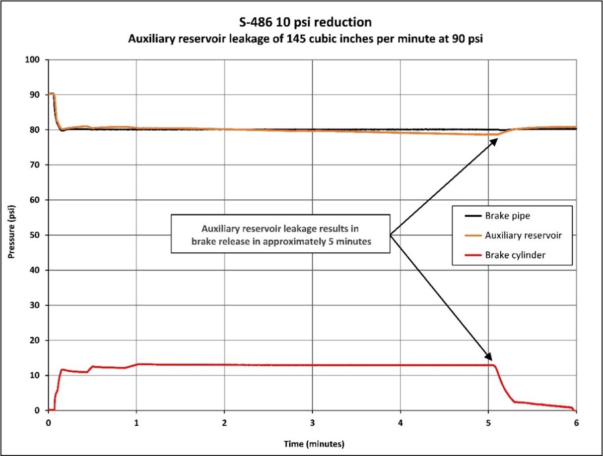 Most air brake issues can be detected when freight cars and locomotives are tested and inspected. The single car test is particularly relevant in this case: it verifies the intended operation of car brakes and ensures, among other things, that the brakes remain applied and do not exceed allowable leakage rates. Cars in service are required to undergo this test at least once every 5 years. The cars on the occurrence train met this requirement.