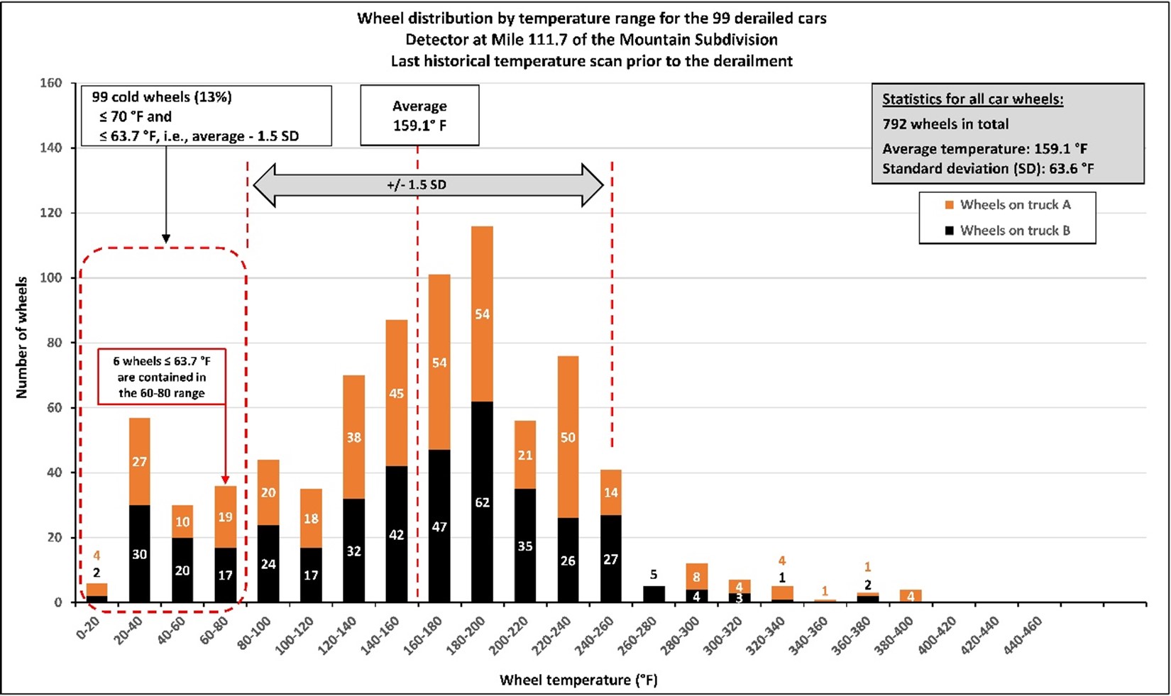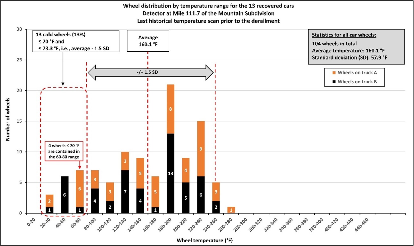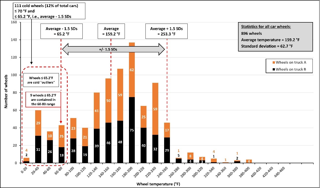 CP collects data from the wheel temperature detectors on its network. The work done by CP to use detectors to identify cars with brake system issues was novel in the industry when it began in 2008. These detectors make it possible to identify cars with cold wheels—cold wheels being an indicator of poor braking performance. The data collected in winter allow the railway to monitor the temperature sensitivity and performance of car air brakes when they are most susceptible to leakage.