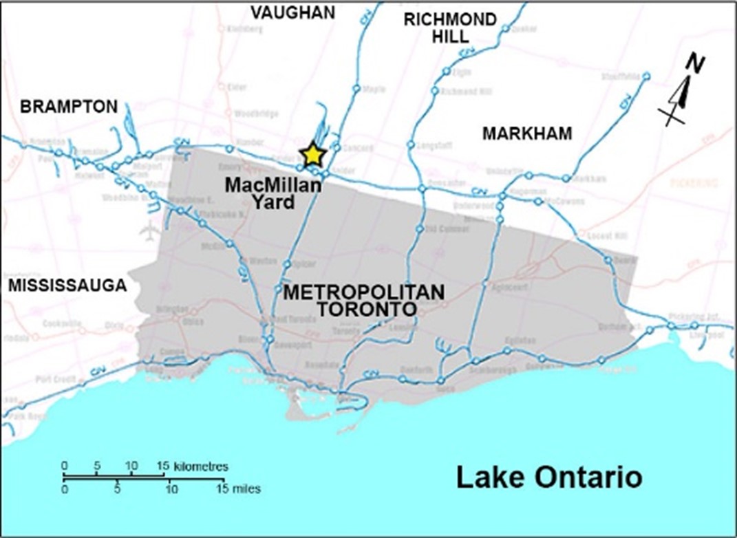 On 14 August 2019, at about 2330,Footnote 2 the Canadian National Railway Company (CN) remote control locomotive system (RCLS) YDHF60 dual hump yard assignment was switching cars at the north end of CN’s MacMillan Yard. The yard covers about 5 square miles in area and is located within the Concord industrial district of Vaughan, Ontario, just north of metropolitan Toronto, Ontario (Figure 1).