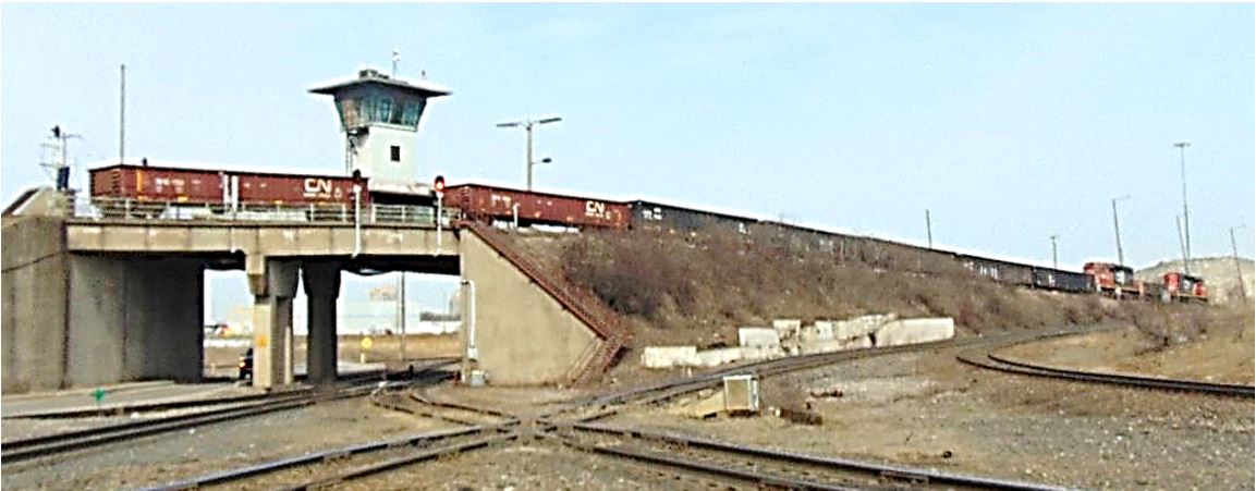 MacMillan Yard is CN’s main rail classification yardFootnote 3 in Eastern Canada, where rail traffic is distributed by flat switching or humpingFootnote 4 rail cars into various tracks for placement on different trains. MacMillan Yard operations are conducted under Canadian Rail Operating Rules (CROR) Rule 105. Train movements are restricted to a maximum speed of 15 mph. They must also be able to stop within half the range of vision of equipment and stop short of a misaligned switch, a derail in the derailing position as well as blue flagFootnote 5 or red flagFootnote 6 track protection.