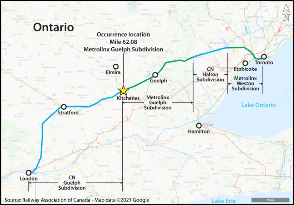 Although this transit company falls under provincial jurisdiction, the TSB conducted the investigation at the request of the Ontario Ministry of Transportation.