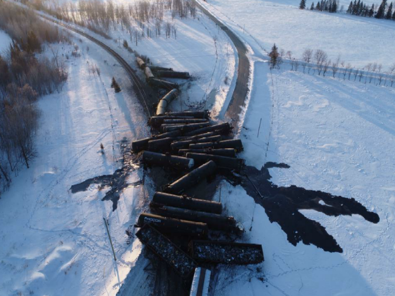 At the time of the accident, the skies were clear and the temperature was −27 °C. In the vicinity of the derailment, the area had recently experienced several freeze-thaw cycles. Between 10 February 2020 and 18 February 2020, the average daytime temperature was about −6 °C and the average nighttime temperature was about −27 °C.