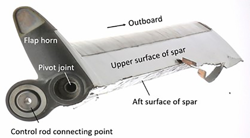 The U.S. National Transportation Safety Board (NTSB) investigated 2 accidents—one in 2010 and the other in 2020—that involved the catastrophic failure of the Kaman K-1200 main rotor systems. In both accidents, the helicopter was destroyed, and the pilot fatally injured. In each case, investigators found that the aft body of 1 servo flap had separated from the spar and, in the 2020 case, there was evidence of a progressive crack that initiated at the inboard end before propagating outboard.