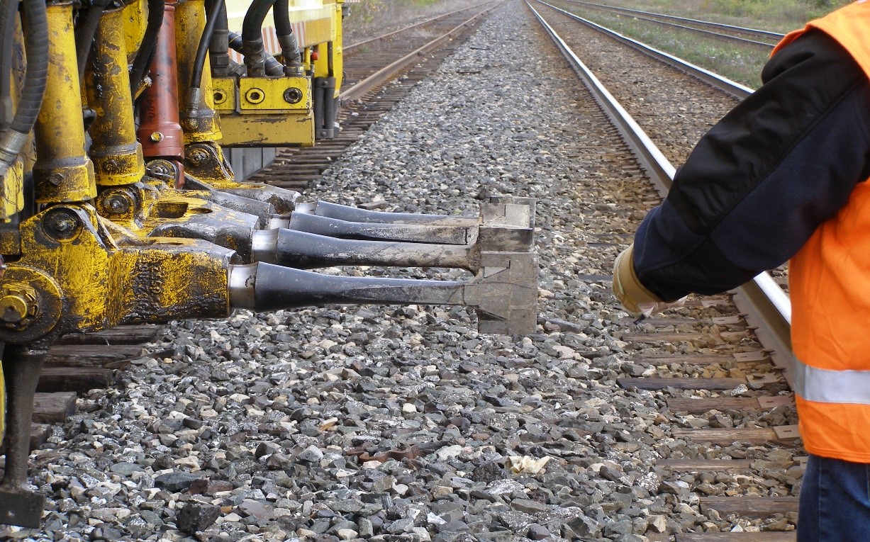 As the train approached on the tangent track, the train crew observed the appurtenances from the tamper extended laterally and foul of the south track (Figure 2). The locomotive engineer applied the brakes and brought the train to a controlled stop.