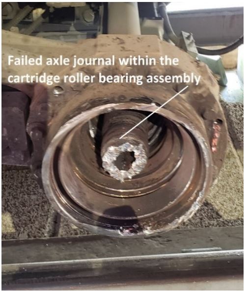 - The No. 3 wheel had severed from the axle due to a previously undetected catastrophic roller bearing failure and subsequent axle journal burn-off (Figures 6 and 7).
