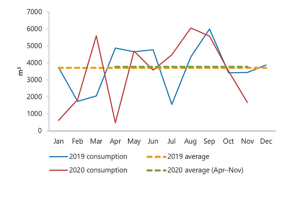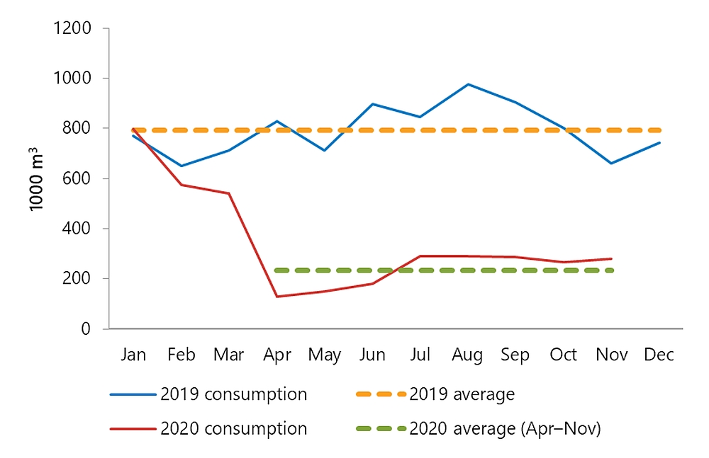 | Month | 2019 consumption | 2019 average | 2020 consumption | 2020 average (Apr–Nov) |