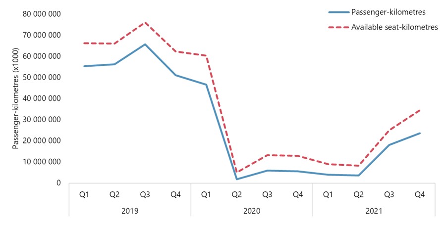 | Year | Quarter | Passenger-kilometres | Available seat-kilometres |
