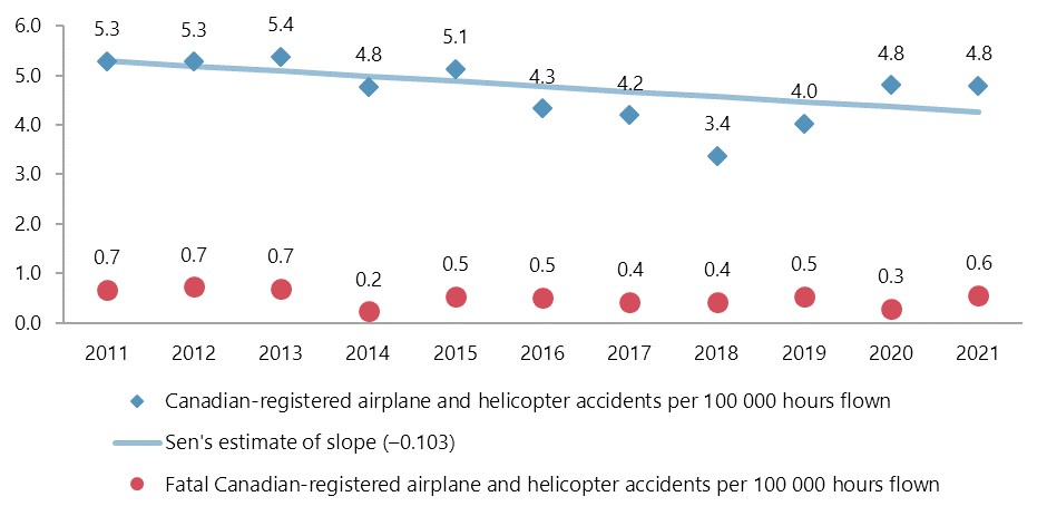 The statistics presented here reflect the TSB Aviation Safety Information System (ASIS) database at 15 March 2022. Since the occurrence data are constantly being updated in the live database, the statistics may change slightly over time.