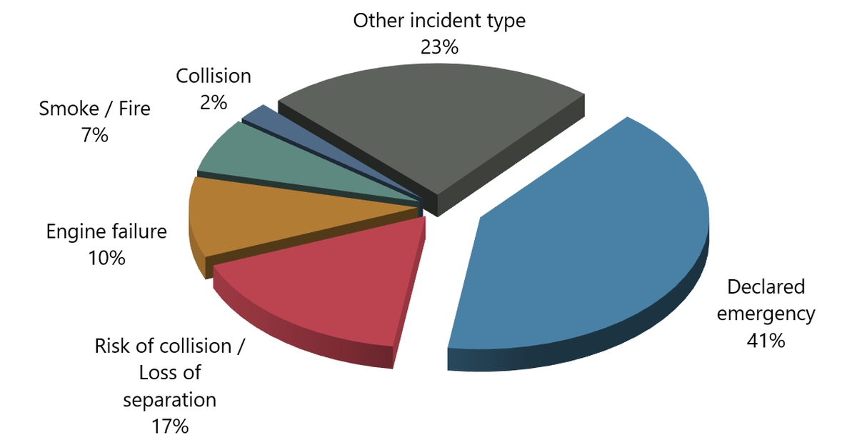 Throughout this document, there are instances where categories of occurrences sum to more than the total number of occurrences. For example, if a single occurrence involves an airplaneFootnote 2 and a glider, the occurrence count will increase by one in each aircraft category but the occurrence itself will be counted only once in the total of occurrences.