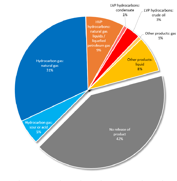 | No release of product | Release of hydrocarbon gas | Release of HVP hydrocarbons | Release of LVP hydrocarbons1 | Release of other product | ||||||