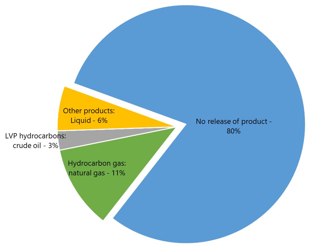 | No release of product | Release of hydrocarbon gas | Release of HVP hydrocarbons1 | Release of LVP hydrocarbons2,3 | Release of other product4 | ||||||