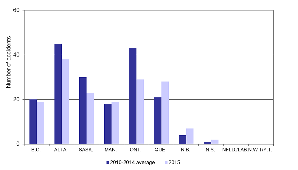 The 2015 data were collected according to the reporting requirements described in the Transportation Safety Board Regulations in force during that calendar year.