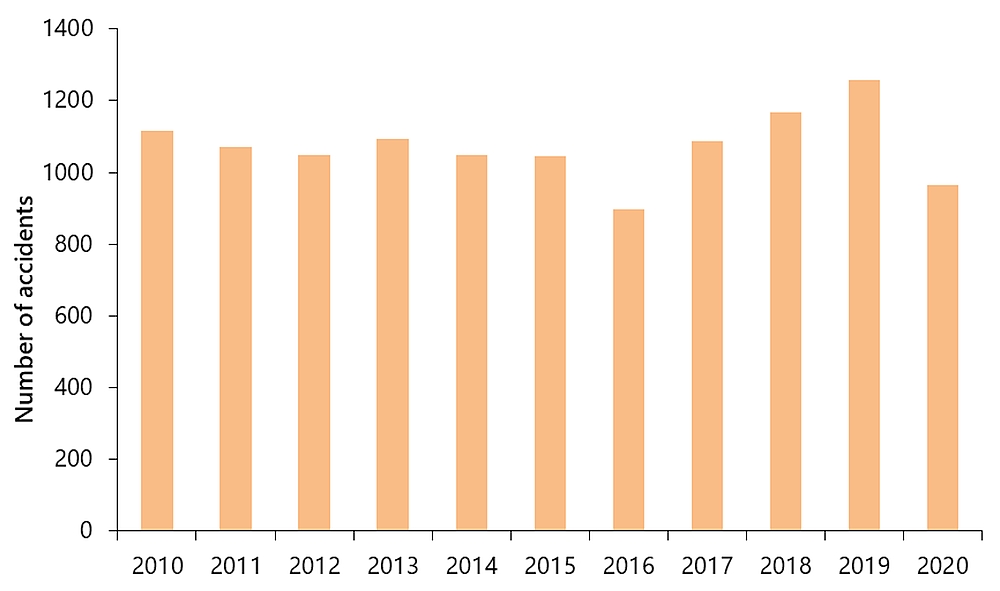 | Other accident types | 24 | 43 | 33 | 65 | 37 | 46 | 55 | 45 | 46 | 42 | 31 |