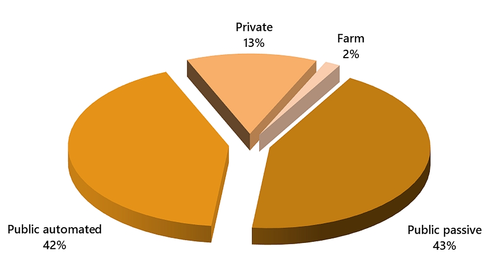 In 2020, 42% of crossing accidents occurred at public automated crossings, and 43% at public passive crossings (Figure 8). Although there are nearly twice as many public passive crossings than public automated crossings, the comparable number of accidents occurring at automated crossings is due, in part, to higher vehicle and train traffic volumes at the automated crossings. The TSB is conducting ongoing research to better understand the causes of crossing accidents.