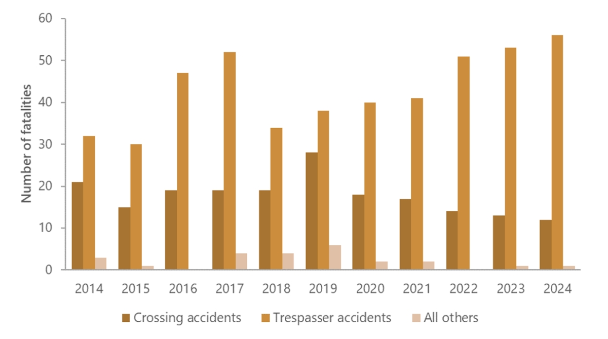 | Year | Crossing accidents | Trespasser accidents | All others |