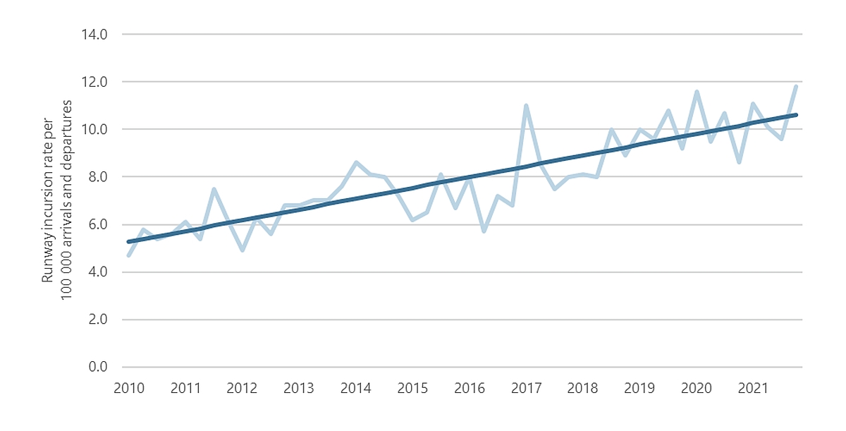 - the rate of runway incursions demonstrates a sustained reduction, and the number of high-risk incursions continues to show a sustained reduction.
