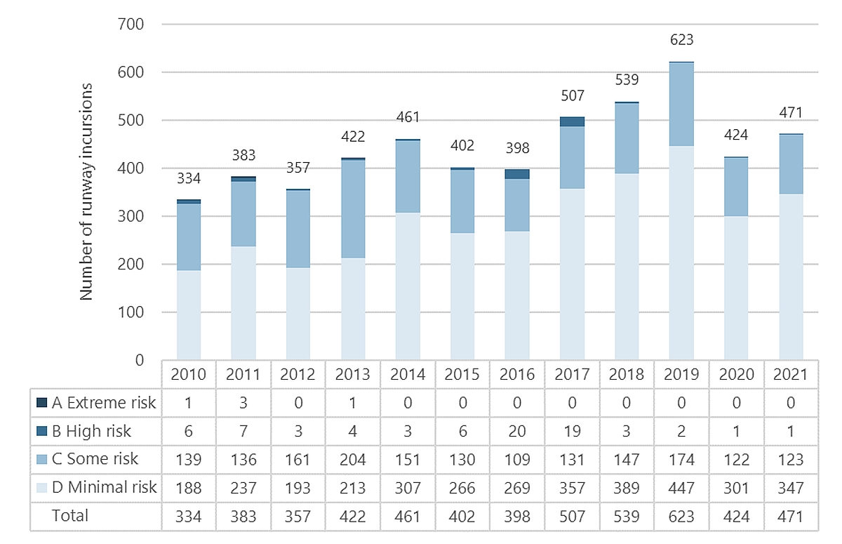 In 2021, NAV CANADA recorded 471 runway incursions.