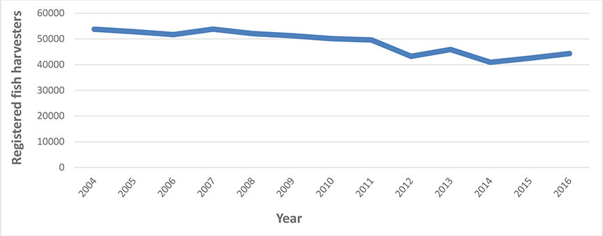 ** Data for 2017 and 2018 not yet available. Source: Department of Fisheries and Oceans Canada.
