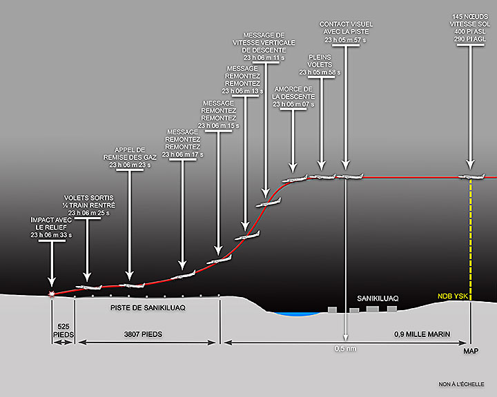 Le , l'aéronef Fairchild SA227-AC Metro III (immatriculé C-GFWX, numéro de série AC650B) de Perimeter Aviation LP, effectuant le vol nolisé Perimeter PAG993, a décollé de l'aéroport international Winnipeg/James Armstrong Richardson (Manitoba) à 19 h 39 temps universel coordonné (13 h 39 heure normale du Centre) à destination de Sanikiluaq (Nunavut). Après une tentative d'approche visuelle de la piste 09, l'équipage de conduite a tenté une approche de non-précision par radiophare non directionnel (NDB) de la piste 27. L'équipage de conduite a établi le contact visuel avec les environs de la piste et a amorcé une approche indirecte de la piste 09. L'équipage a ensuite perdu le contact visuel avec les environs de la piste 09 et est retourné au NDB de Sanikiluaq. L'équipage a effectué une deuxième approche au moyen du NDB de la piste 27 dans l'intention d'atterrir sur la piste 27. L'équipage a établi le contact visuel avec les environs de la piste après avoir passé le point d'approche interrompue. Après une descente abrupte, on a amorcé un atterrissage interrompu à une hauteur de 20 à 50 pieds au-dessus de la piste; l'aéronef a heurté le sol à environ 525 pieds au-delà de l'extrémité de départ de la piste 27. La radiobalise de repérage d'urgence de 406 MHz s'est déclenchée à l'impact. Les 2 membres de l'équipage de conduite et 1 passager ont été grièvement blessés, 5 passagers ont été légèrement blessés, et 1 bébé a été mortellement blessé. Les occupants ont évacué l'aéronef par l'issue de secours avant sur l'aile droite et ont immédiatement été transportés au centre de soins de santé local. L'aéronef a été détruit. L'événement s'est déroule à la noirceur, à 23 h 6 temps universel coordonné (18 h 6 heure normale de l'Est).