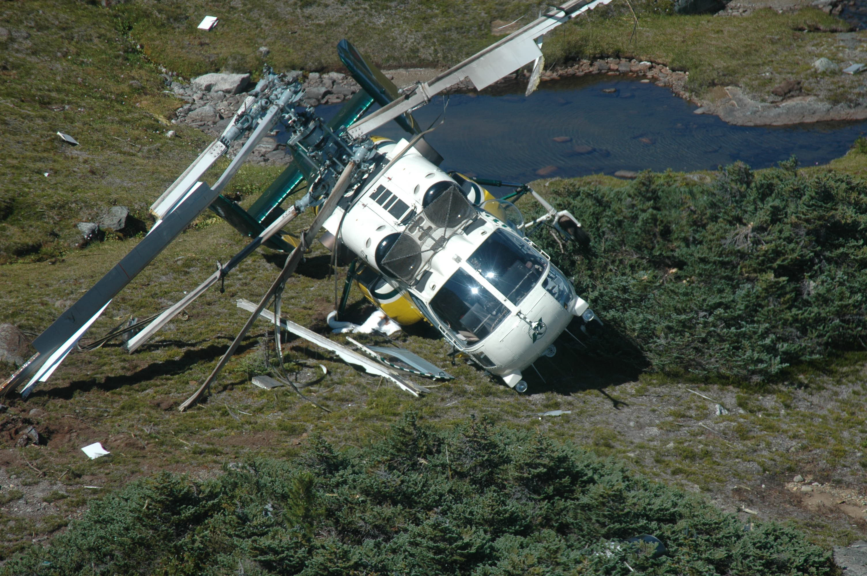 Le Kamov Ka-32A11BC (immatriculé C-GKHL, numéro de série 31594) exploité par VIH Helicopters Ltd. effectue des activités de lutte contre les incendies de forêt au moyen d'un réservoir héliporté au bout d'une longue élingue suspendue au crochet ventral de l'hélicoptère. Vers 18 h 30, heure avancée du Pacifique, l'hélicoptère vient juste de soulever un réservoir rempli d'eau puisée d'un lac situé sur une montagne à haute altitude lorsqu'une détonation violente retentit, suivie d'un bruit de grincement plaintif, et que l'hélicoptère se met à vibrer violemment. Le pilote qui n'est pas aux commandes (PNF) largue la charge externe (élingue et réservoir), tandis que le pilote aux commandes (PF) dirige l'hélicoptère vers le sol pour effectuer un atterrissage d'urgence. L'équipage de conduite a de la difficulté à diriger l'hélicoptère dans la direction voulue, et la vibration est telle qu'il leur est impossible de lire les instruments du tableau de bord. Malgré le braquage presque complet du manche cyclique vers la gauche, l'hélicoptère dérive latéralement vers la droite et touche le sol. L'hélicoptère se pose durement et rebondit avant de basculer sur le côté droit; les pales des rotors principaux se brisent au contact avec le sol. L'équipage de conduite subit des blessures mineures, mais réussit à couper les moteurs et à évacuer l'aéronef. Il n'y a eu aucun incendie. La radiobalise de repérage d'urgence de 406 MHz se déclenche à l'atterrissage.